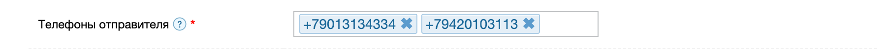 Телефоны отправителя