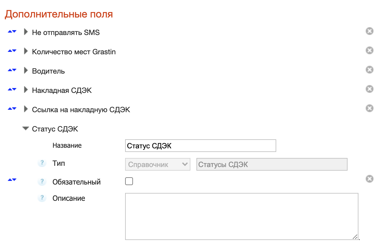 Опция позволяет транслировать ссылку на накладную СДЭК в доп. поле документа. При повторном создании накладной для одного и того же документа, ссылка будет заменена новой.