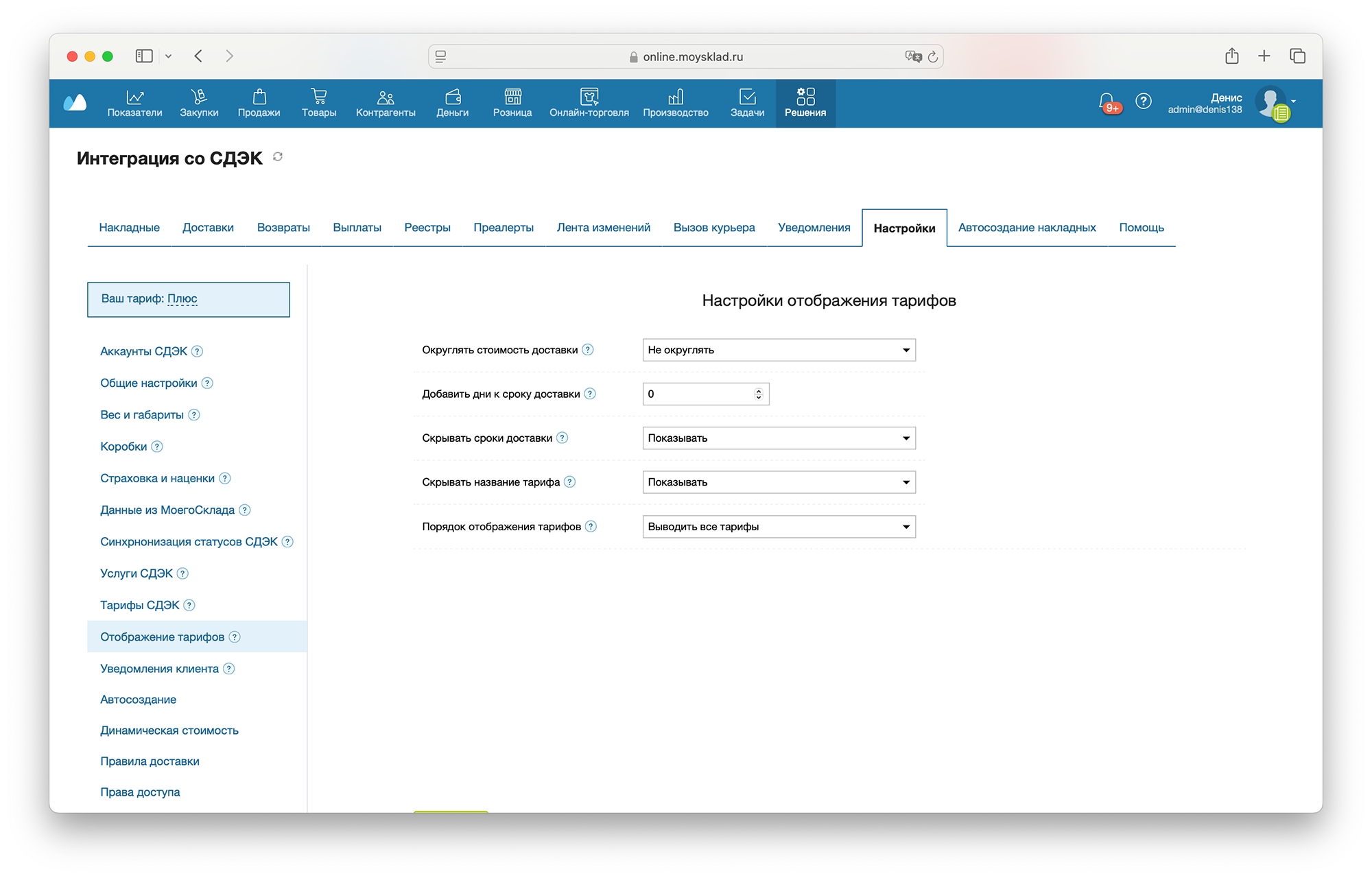 Вы можете выбрать порядок отображения тарифов в виджете приложения. По умолчанию тарифы отсортированы по стоимости доставки (сначала самые дешевые). Вы можете выводить все тарифы, оставить только один или только два самых дешевых.