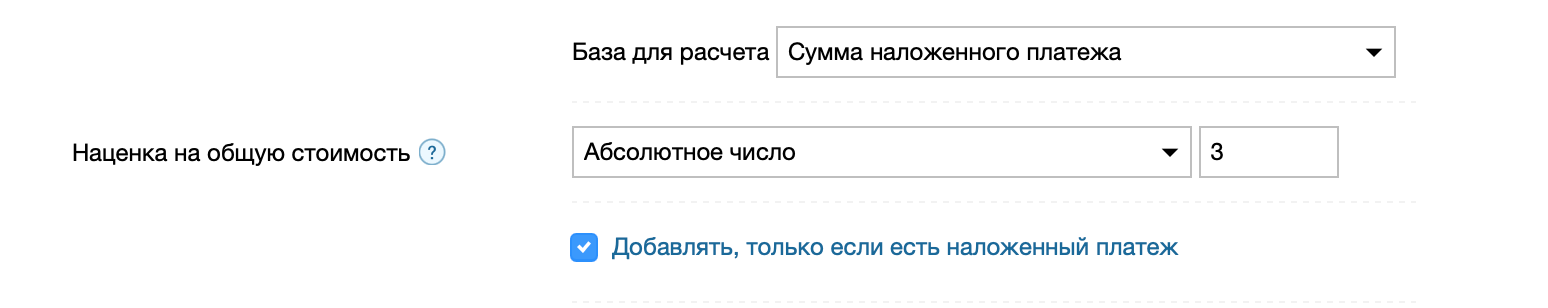 Опцию удобно использовать, если вы хотите включить процент за инкассацию при приеме наложенного платежа от СДЭК в стоимость доставки (3%).