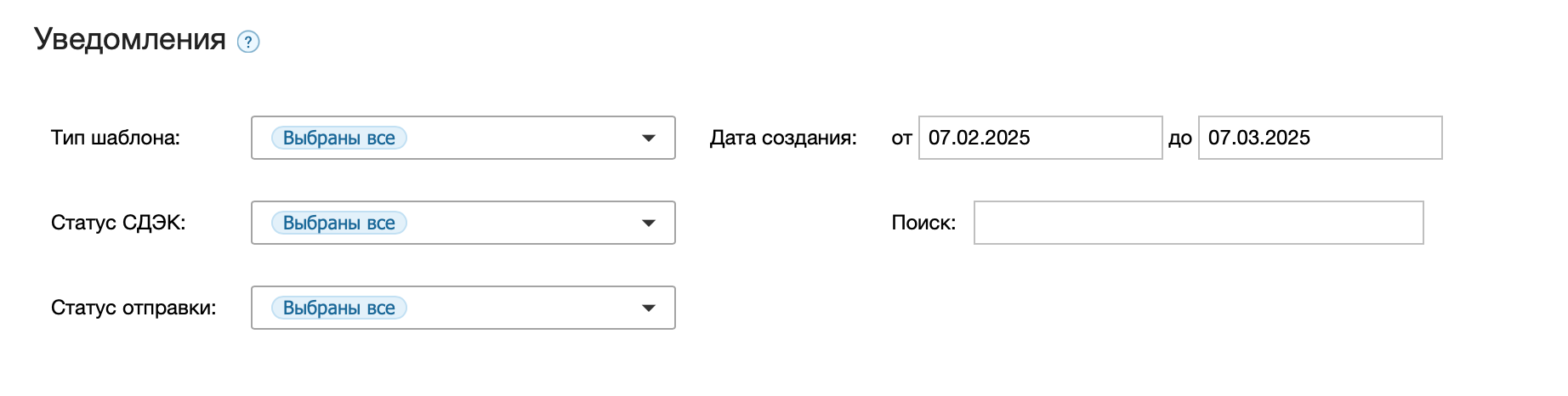 Во вкладке Уведомления отображаются все созданные SMS и E-mail уведомления клиентам, их текущие статусы отправки, тип, предпросмотр отправленного текста, раздел редактирования Шаблонов