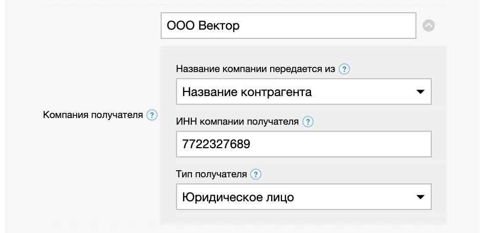 Так же в виджете есть возможность указать ИНН и тип контрагента для этого нажмите на стрелку вниз ⬇️