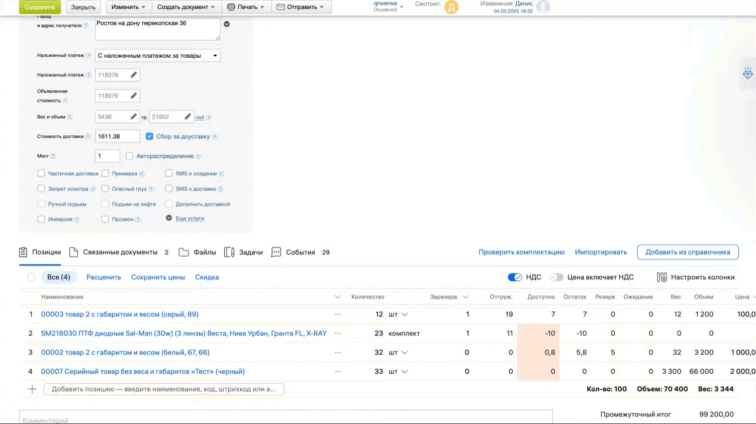 Вы можете редактировать стоимость доставки на свое усмотрение, а также включить сбор за доставку в накладную, отметив галкой Включить сбор за доставку.