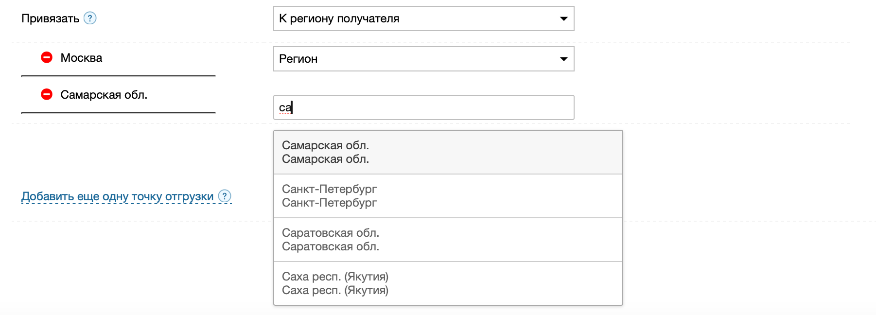 Пункт самовывоза отправителя