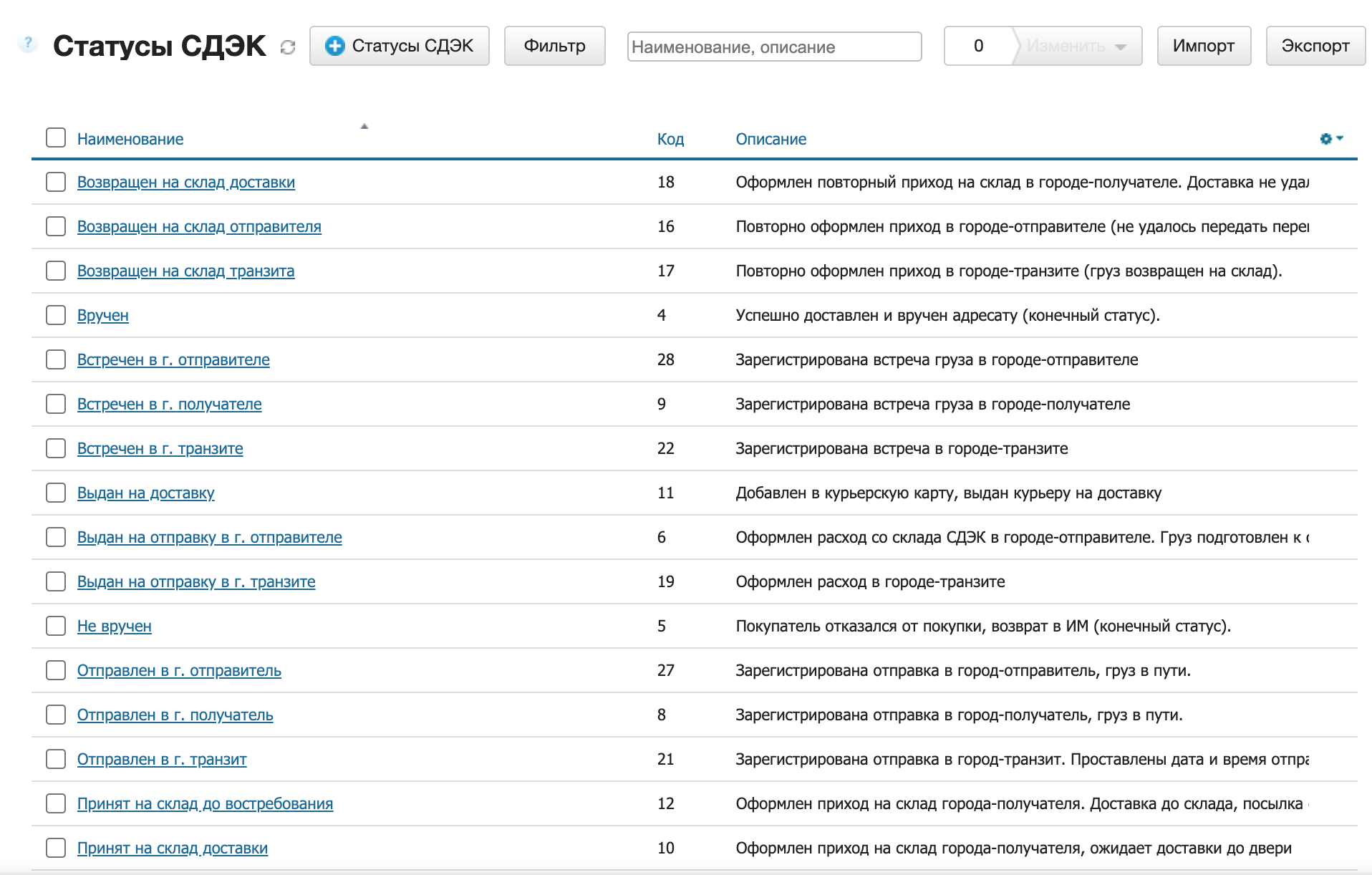 Cправочник [Режим доставки СДЭК] добавляются автоматом при установке приложения