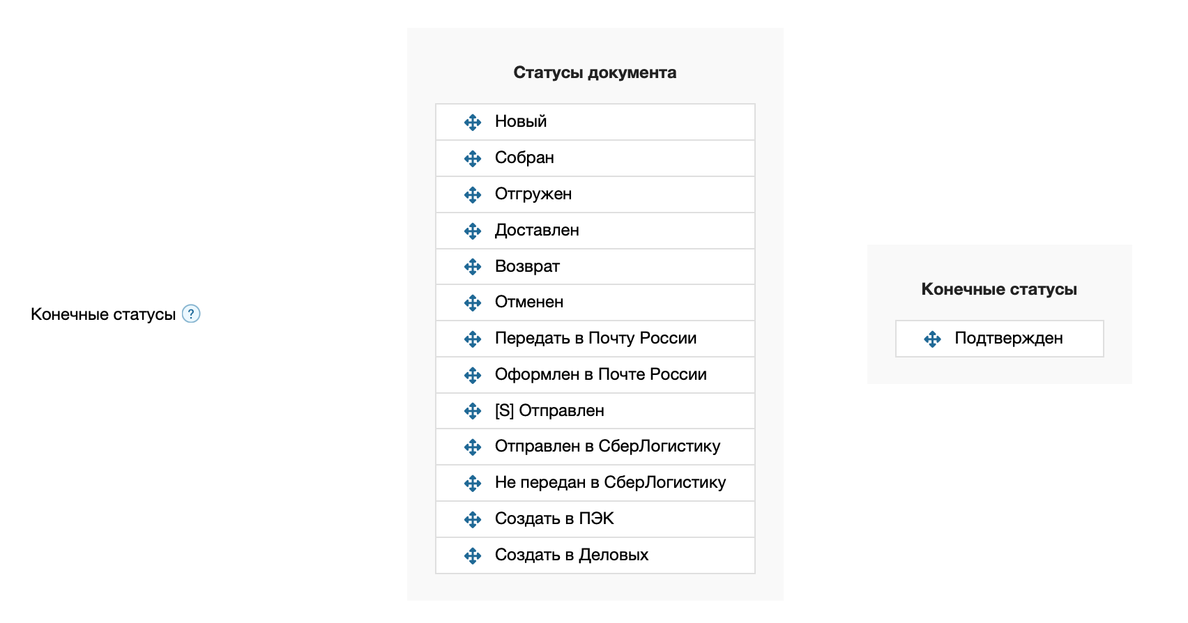 Раздел позволяет настроить сопоставление Статусов СДЭК и МойСклад При смене статуса в СДЭК - документ в МоемСкладе перейдет в выбранный статус