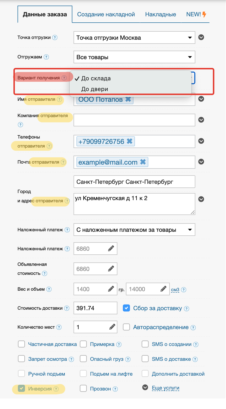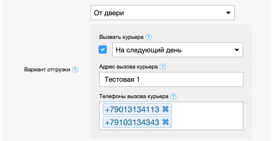 - От двери. Данный метод подразумевает вызов курьера на каждое созданное отправление. В виджете есть опция автоматического вызова курьера на такое отправление.