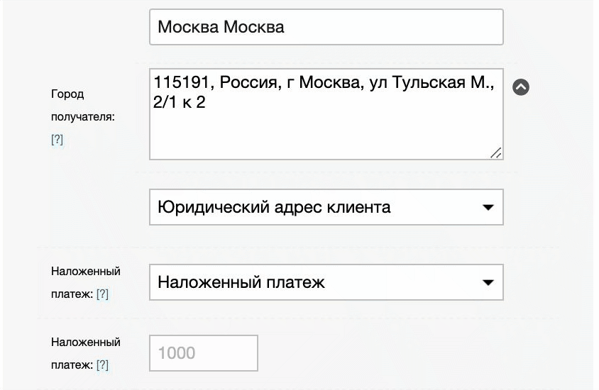 Важно заметить, что город определяется из адреса в МоемСкладе и сопоставляется с базой городов СДЭК. Правильность распознавание города из адреса не гарантируется, поэтому при оформлении стоит уделять отдельное внимание этому полю.