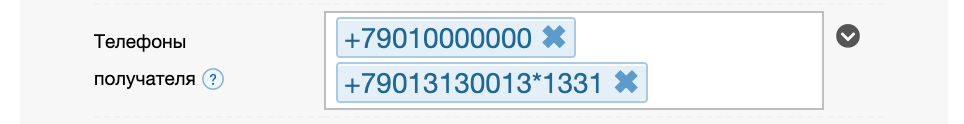 Возможно передать сразу несколько контактных телефонов. Добавочные номера должны быть указаны через астериск *