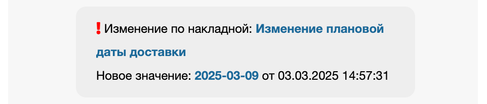 Если по накладной есть измненеия (дата доставки, режим доставки, стоимость доставки) — информация об этом будет доступна в виджете